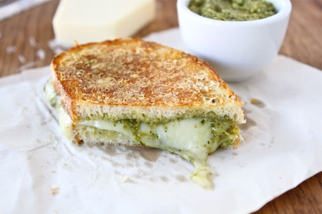Parmesan Crusted Pesto Grilled Cheese Sandwich